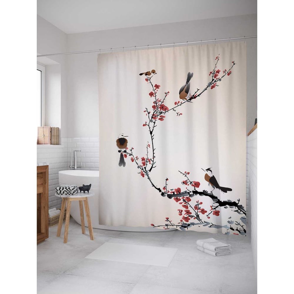 Шторка-занавеска для ванной JoyArty Компания птиц