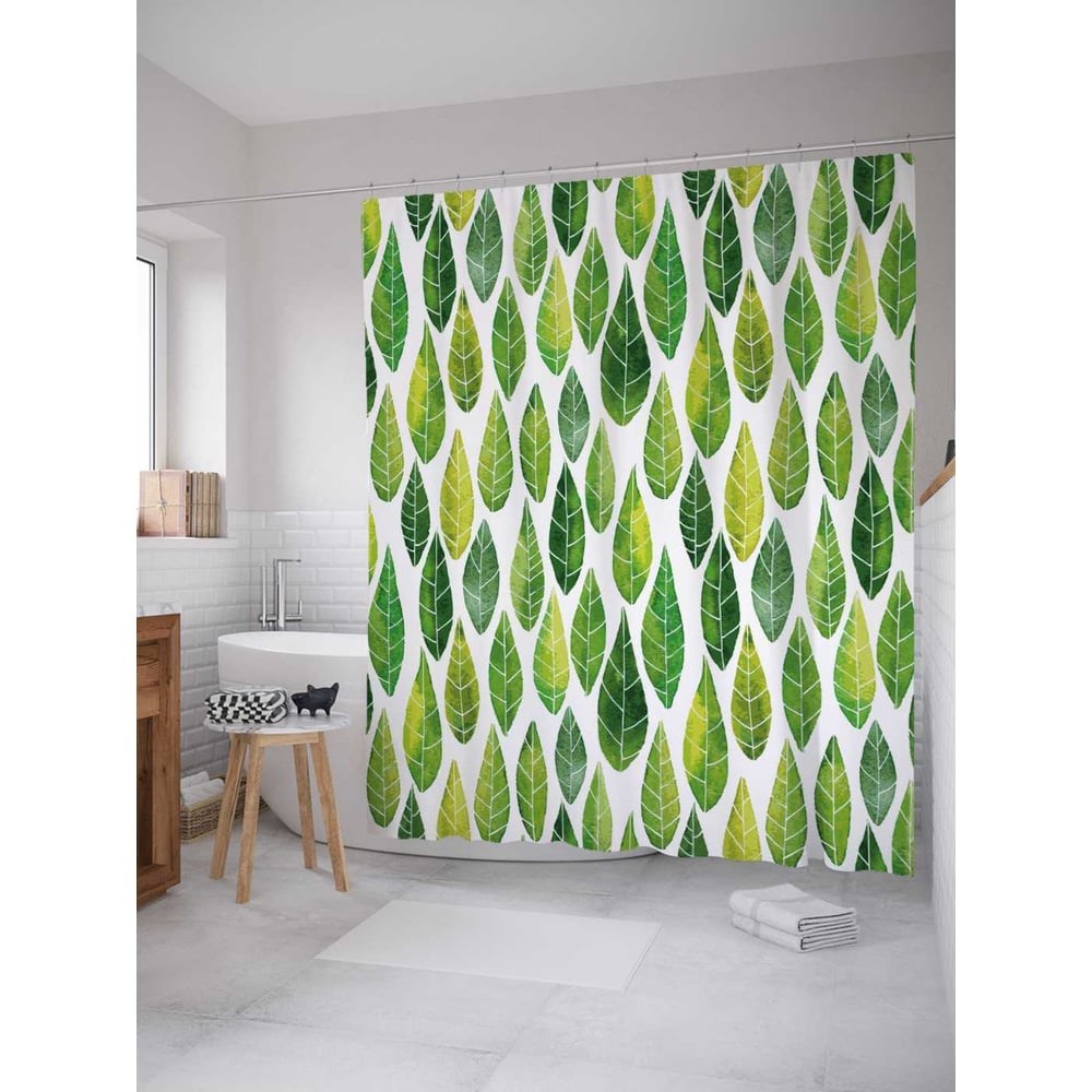 Шторка-занавеска для ванной JoyArty Зеленые листья