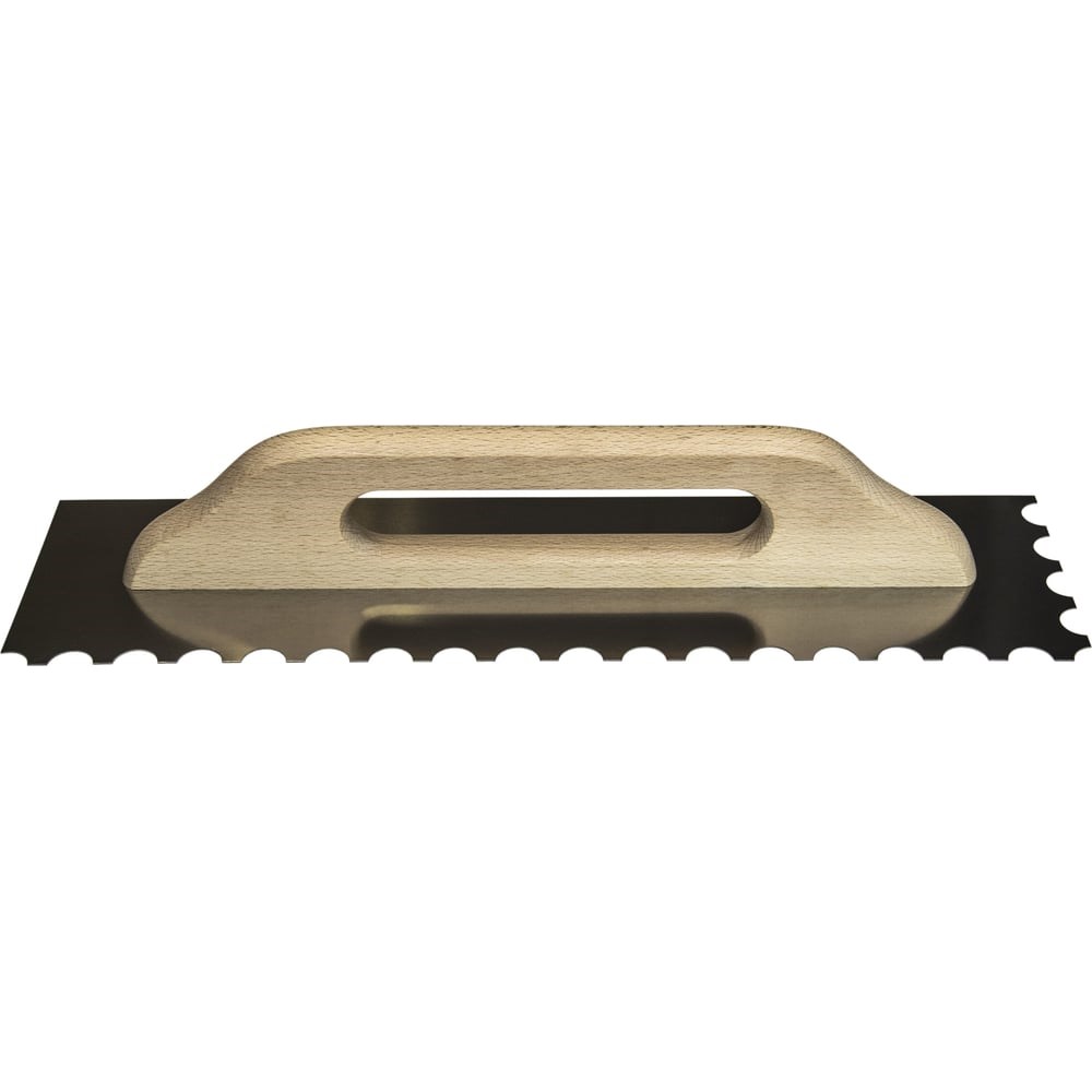 Гладилка HARDY швейцарская, 130х480 мм, серия *43*, зубчатый полукруг 14 мм - 0800-434811 используется для работы на больших поверхностях. Широко применяется при ремонтно-отделочных работах, когда требуется нанести большое количество раствора или бетона ровным тонким слоем, например плиточного клея, штукатурки или шпатлевки. Конструктивно инструмент состоит из двух элементов: полотна и ручки. Рабочая часть гладилки изготавливается из нержавейки, что существенно продлевает срок ее службы. Гладилка позволит быстро исправить дефекты поверхности, заделать трещины и швы, сгладить неровности стен и потолка, подходит для гипсокартона. С помощью гладилки наносятся сухие смеси, штукатурка, шпатлевка, клей и т.д. Зубчатая часть гладилки применяется при нанесении состава под укладку плитки: за счет зубцов смесь равномерно распределяется, легко выравнивается толщина слоя, что повышает качество и скорость отделки, а так же уменьшает расход раствора. Размер полукруга - 14 мм.