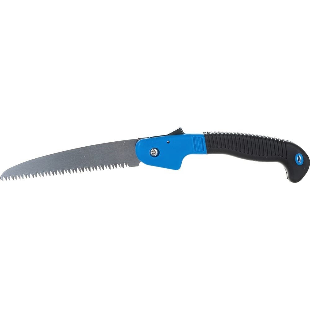 Размер лезвия: 18 см. Лезвие из высококачественной стали (65Mn). Прорезиненная двухкомпонентная рукоятка предотвращает скольжение руки, обеспечивает удобный захват. Для безопасности лезвие фиксируется в раскрытом и сложенном состоянии. Предназначена для сырой и сухой древесины. Крупный зуб 6 TPI.