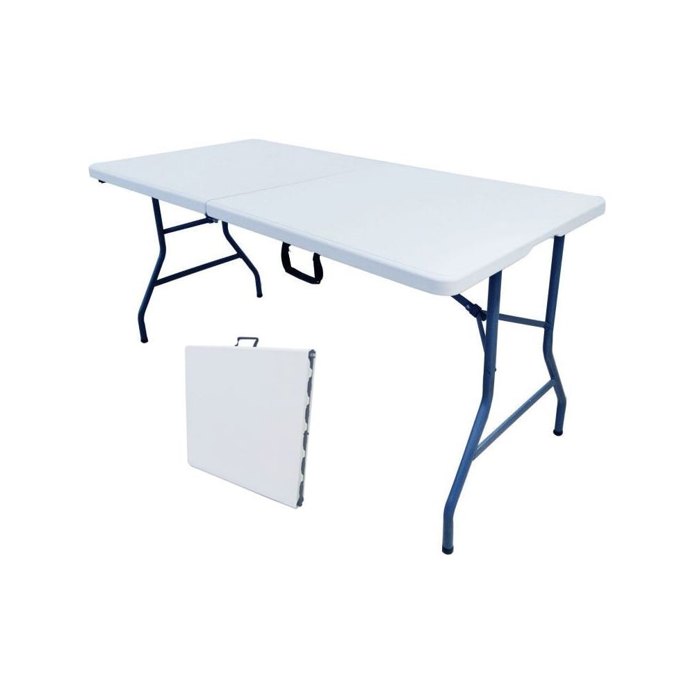В числе преимуществ, которыми обладает этот складной пластиковый стол-книжка, можно назвать выверенные параметры, легкость, прочность и эргономичность конструкции. При длине стола 152 сантиметра, ширине в 74 см и такой же высоте за ним могут разместиться до 14 человек. Благодаря этому стол можно использовать как для выездных деловых и праздничных мероприятий, так и в личных целях на собственной даче или в загородном доме. При этом вес модели – всего 13 кг, что позволяет без проблем загрузить его в автомобиль или перевезти в одиночку. Для каркаса используется стальная труба особой прочности, а столешница выполнена из 100% не переработанного полиэтилена HDPE (полиэтилен высокой плотности). Считается одним из более безопасных видов пластика. HDPE пластик выдерживает высокие нагрузки, не трескается при ударной нагрузке, эластичен в диапазоне температур от –70 до +100 °С.