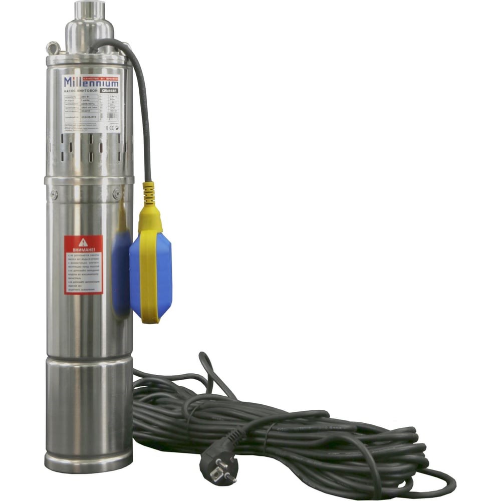 Скважинный винтовой насос Millennium НВ490ВП (СН495ВП) предназначен для перекачки чистой воды из скважин и резервуаров. Оснащён корпусом из нержавеющей стали и встроенным поплавком, который автоматически управляет включением и выключением насоса. Насос обеспечивает стабильный напор до 95 м и производительность 1,9 м³/ч, что делает его идеальным для автономного водоснабжения частных домов и коттеджей. Применение Автономное водоснабжение частных домов и коттеджей Перекачка воды из скважин и колодцев Подключение к бытовым системам водоснабжения Промышленное использование на небольших объектах
