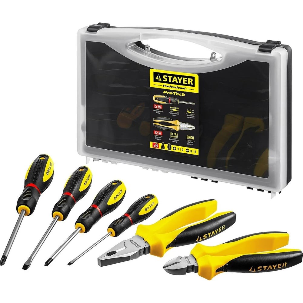 Набор слесарно-монтажного инструмента STAYER CHROMAХ 2202-H6 - комплект инструмента для проведения различных монтажных и ремонтных работ. Состоит из 4 отверток, плоскогубцев и бокорезов.
