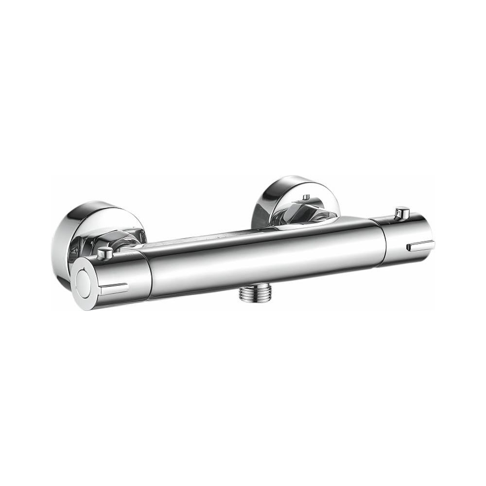 Термостатический смеситель – это смеситель, который гарантирует на выходе постоянную температуру воды. Желаемая температура настраивается при помощи рукоятки. Термостат отключает горячую воду, когда ее температура превышает ранее заданную. Управление: термостатическое. Тип подводки – жесткая. Материал изделия – высококачественная латунь, которая обрабатывается по современной технологии литья под низким давлением. Поверхность смесителя покрыта хромом, поэтому продукция выглядит изящной и гладкой и сохраняет свой первоначальный вид на долгие годы. Подвод горячей воды осуществляется слева.