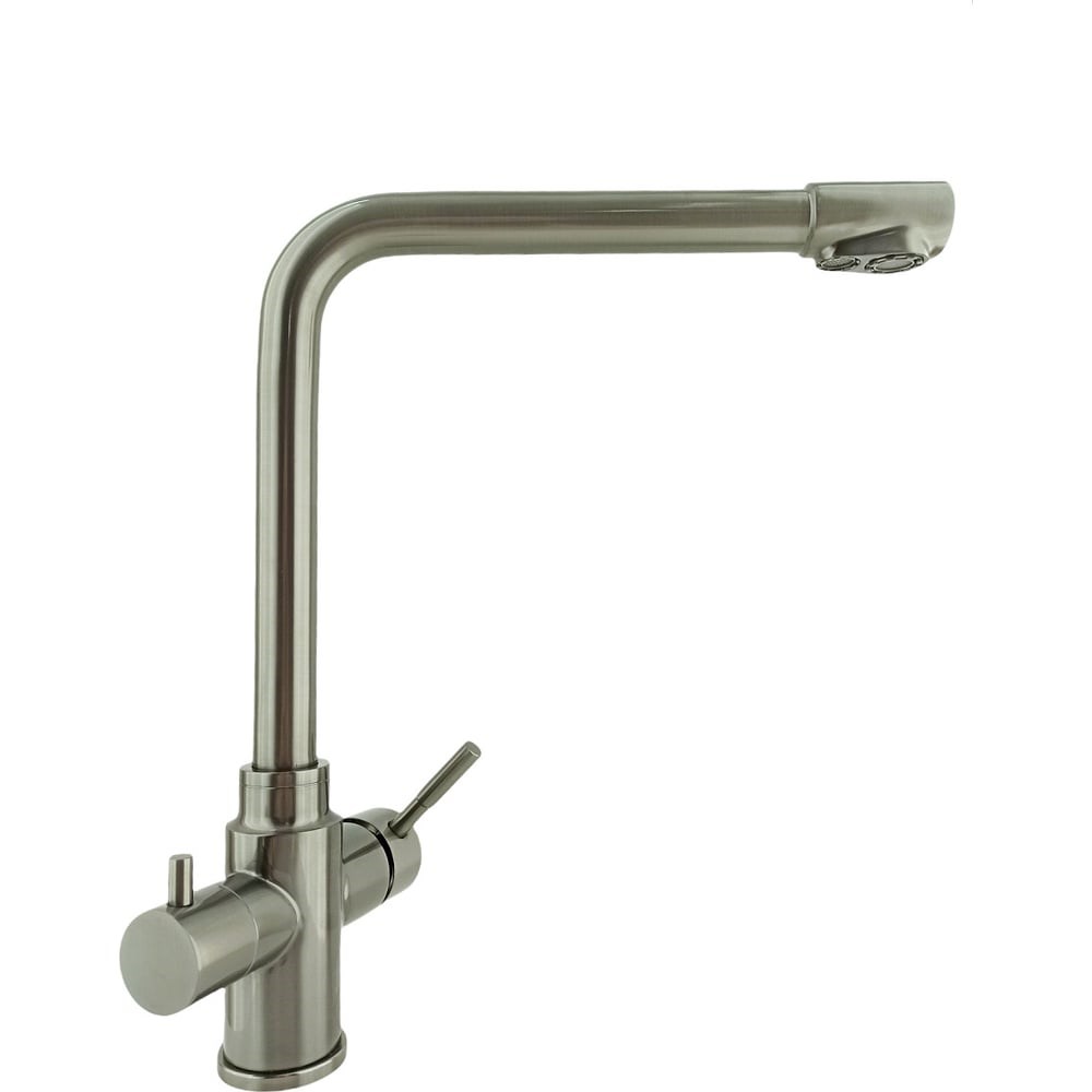 Смеситель для кухни OUTE титановый, с выходом под фильтр, из нержавеющей стали SUS 304 T60303BY выполнен из нержавеющей стали, которая отличается хорошими противокоррозионным свойствами, а также имеет длительный срок эксплуатации. Лаконичный и современный дизайн делают смеситель прекрасным дополнением любого интерьера. Смеситель для кухни с боковой ручкой и отдельным выходом под фильтр. Выполнен в стиле хай-тек.