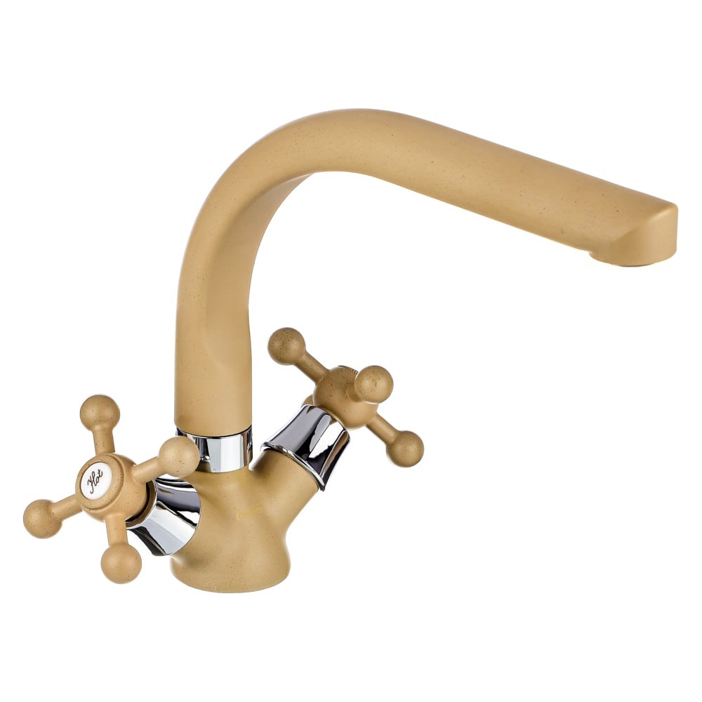 Смеситель для кухни СоюзКран SK01-G208 с поворотным изливом длиной 25 см выполнен из высококачественного цинкового сплава, который отличается высокой степенью устойчивости к коррозии и рассчитан на длительное использование. Имеет стильный дизайн в бежевом цвете, который впишется в интерьер современной кухни. Керамические кран-буксы 1/2 дюйма придутся по душе любителям классики. Краны крутятся легко и четко, позволяя быстро настроить интенсивность струи и температуру воды. Смеситель надежный и долговечный. Комплект включает всю необходимую фурнитуру для монтажа.