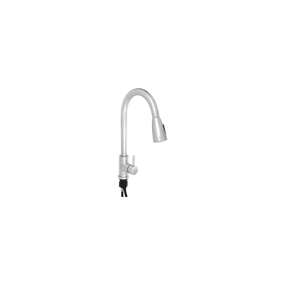 Смеситель для кухни СОЮЗКРАН с выдвижным изливом. Высоту излива можно менять. Установите минимальную высоту, чтобы наполнить мойку водой, или максимальную, когда вам нужно вымыть большую кастрюлю. Максимальная высота излива - 40 см. Лейка смесителя с переключением режимов работы. Смеситель однорычажный: настраивайте напор и температуру воды быстро одной рукой. Водозапорный механизм - керамический картридж 35 мм. Собран без прокладок, из-за которых в смесителях бывают течи. Служит до 10 лет. Работает тихо и плавно. Смеситель из нержавеющей стали. Красиво выглядит. Служит долго. Не портится от перепадов температуры воды. Не выделяет вредные вещества. Крепление смесителя на гайке - можно установить на тонкую мойку. Керамический картридж чувствителен к качеству воды. Чтобы смеситель прослужил дольше, установите фильтры очистки воды.