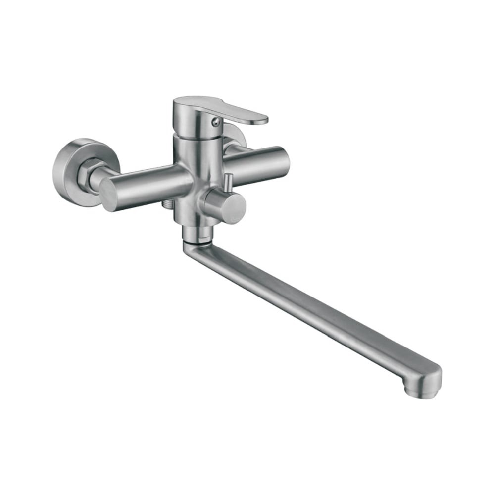 Смеситель для ванны OUTE из нержавеющей стали SUS 304T40523 выполнен из нержавеющей стали SU304 благодаря чему может прослужить многие годы. При нахождении во влажной среде или постоянном контакте с водой, металлы окисляются и приобретают некрасивый и вредный дефект в виде ржавчины. Нержавеющая сталь лишена этого недостатка.