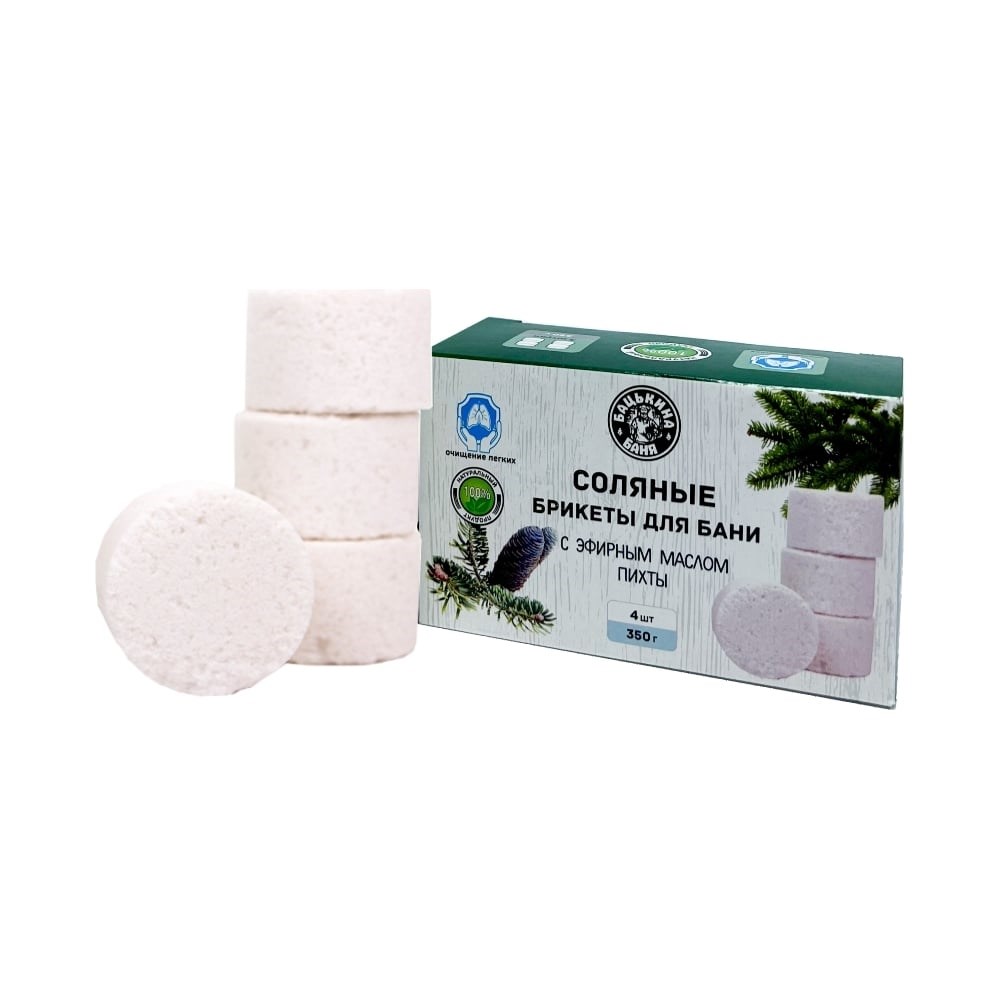 Соляные брикеты для бани с эфирным маслом Пихта Бацькина баня 350 г 23010 изготовлены из морской природной соли, с полезным комплексом макро- и микроэлементов. Соляные пары улучшают кровообращение. Ионы соли проникают в кровеносную систему и ускоряют доставку питательных веществ и кислорода в организме, что приводит к укреплению иммунитета, способствуют очищению дыхательных путей, стимулируют потоотделение, позволяя ускорить процесс вывода токсинов, улучшают состояние кожи и помогают снять стресс и напряжение! Количество брикетов в упаковке: 4 шт. Один брикет рассчитан на объем парной: 4-6 м2.