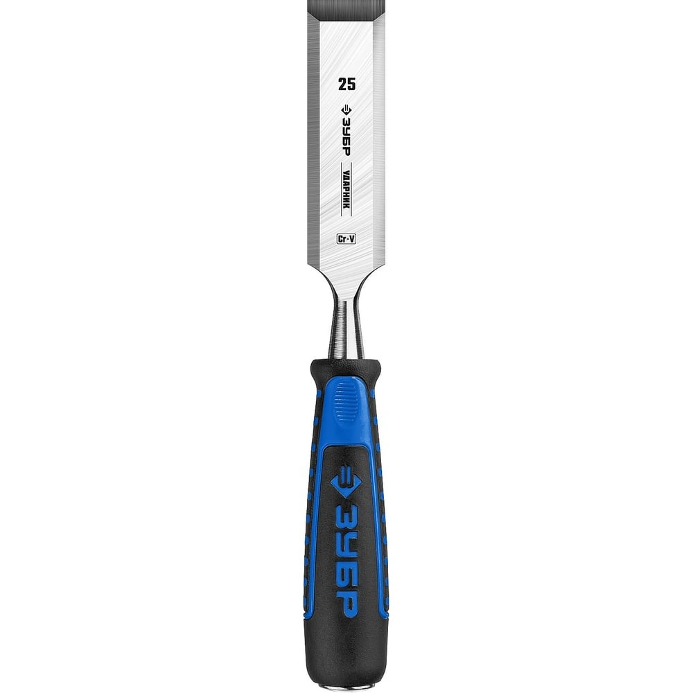 Стамеска-долото ЗУБР Ударник 25мм 18097-25_z01 используется для изготовления отверстий, гнёзд и пазов в деревянных заготовках. Прочное лезвие выполнено из хром-ванадиевой стали, что гарантирует долгий срок службы модели. Мелкорельефная поверхность рукояти позволяет уверенно удерживать инструмент даже в перчатках.