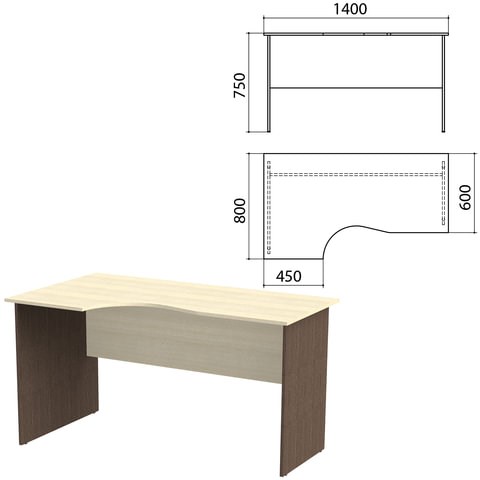 Стол письменный эргономичный "Канц", 1400х800х750 мм, левый, цвет дуб молочный/венге (КОМПЛЕКТ)