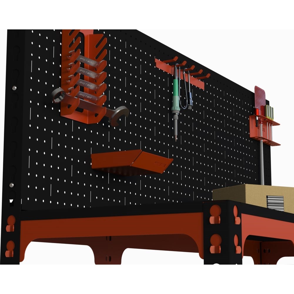 Стол-верстак ООО Металекс 950x1100x600 с бок. полками, перфопанелью и комп. аксессуаров оранжево-чёрный