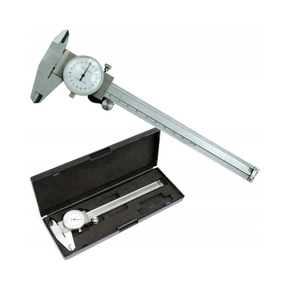 Стрелочный штангенциркуль VOREL 150мм/0,02мм 15220 изготовлен из нержавеющей стали, прост и удобен в использовании. Обладает высокой точностью измерения, показания легко считываются при помощи циферблата с круглой шкалой. Необходим для определения внутренних и внешних размеров и глубины.