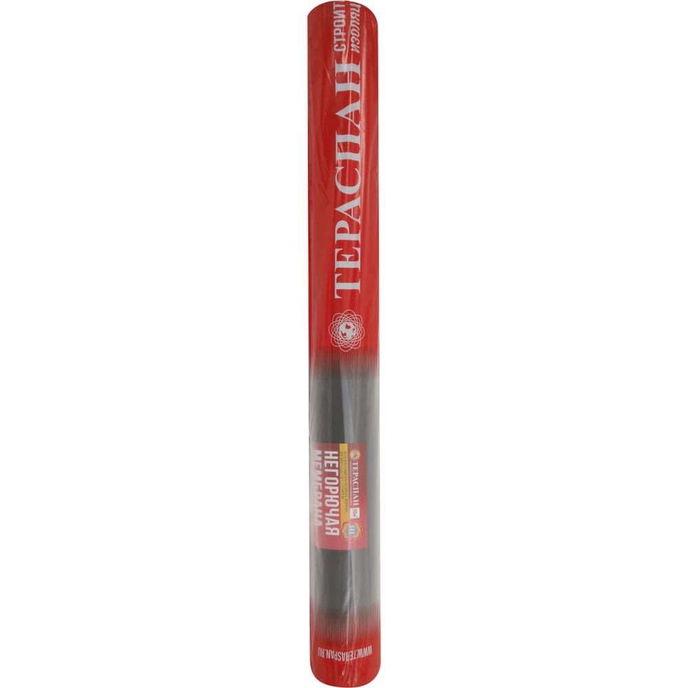 Строительный рулонный изоляционный материал Тераспан НГ черный, 70 кв. м, ветро-влагозащитная, негорючая мембрана 4660077151492 производится на основе высокопрочной стеклоткани и применяется для защиты минераловатного утеплителя. Область применения: В конструкциях вентилируемых фасадов многоэтажных зданий с наружным утеплением. Предохраняет утеплитель от воздействия холодного воздуха, ветра, атмосферной влаги и снега, проникающих в вентилируемый зазор под внешнюю облицовку. Способствует испарению влаги из утеплителя. При укладке обеспечить нахлест 200 мм. В конструкциях утепленных кровель с углом наклона свыше 35 градусов с различными видами покрытия. Служит для защиты утеплителя и несущих элементов от подкровельного конденсата и как дополнительная защита от ветра и влаги. В конструкциях стен малоэтажных зданий из бруса, каркасной, щитовой или комбинированной конструкции, при наружном утеплении стен. Устанавливается с внешней стороны утеплителя под обшивкой здания. Внимание! Тераспан НГ не предназначен для применения в качестве основного и временного кровельного покрытия.