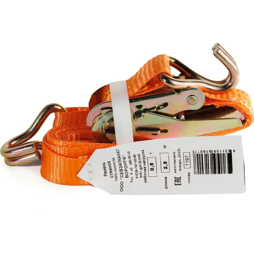 Стяжной ремень для крепления груза СЕВЗАПКАНАТ 0,5 т/2,5 м, крюк-крюк, 25 мм 4631159616017 служит для закрепления груза в кузове или платформе автомобиля при перевозке. Стяжные ремни производятся в строгом соответствии с регламентом ТР ТС согласно РД 24 СЗК-01-01. Ремни изготовлены из высокопрочной ленты, материал - 100% полиэфир. Механизм затяжки также обладает высокой прочностью. Ремни имеют бирку с указанием схемы закрепления груза и разрывных показателей. На каждый ремень выдается паспорт крепежного устройства.