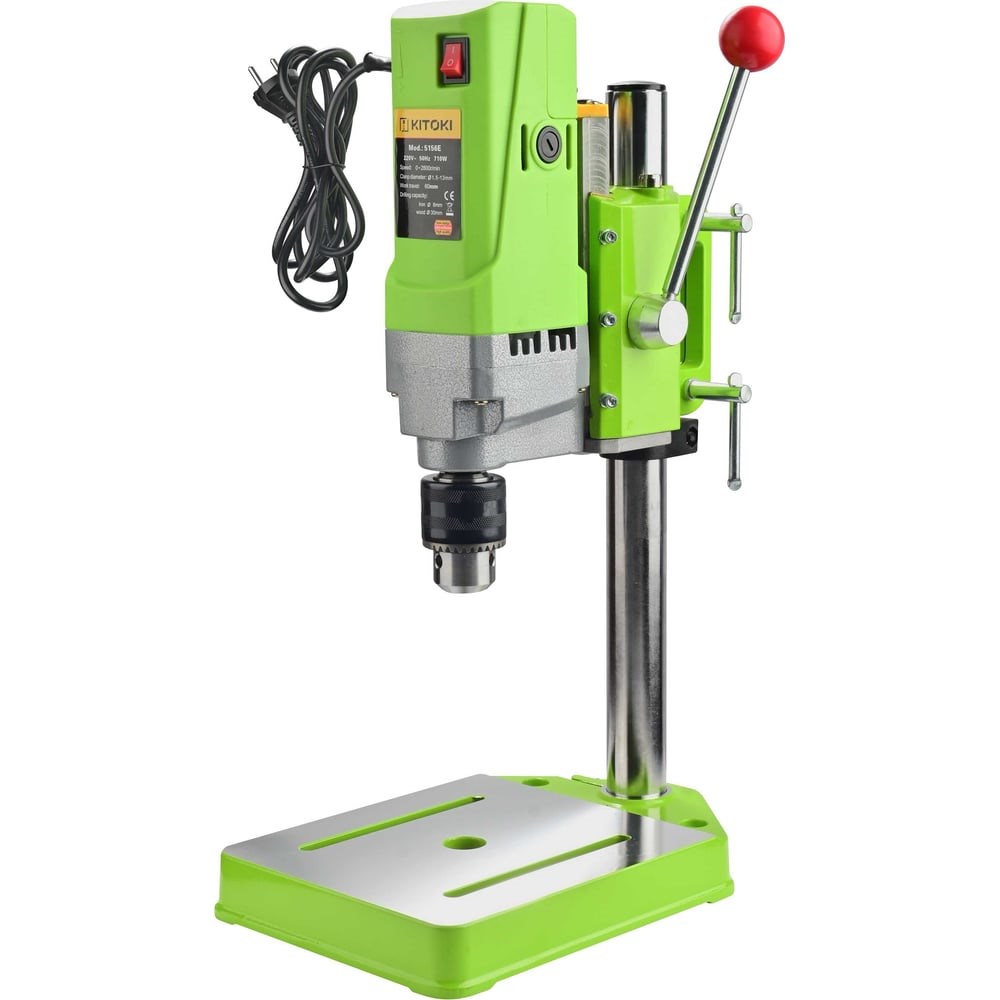 Сверлильный станок - специальный инструмент для сверления по металлу и дереву. Используя различные типы сверл, пользователь может работать с разными материалами, что пригодится в ремонте и строительстве. Электрический станок имеет диапазон оборотов: 0 – 2 800 об/мин. Плавной регулировкой оборотов обеспечивает более аккуратную работу. Модель имеет ручной механизм подачи сверла с ходом - до 60 мм. Благодаря трехкулачковому патрону, станок может зажимать сверла диаметром от 1.5 до 13 мм. В комплекте идут свёрла:3 мм 2 штуки, 2 мм 2 штуки, 1.6 мм 2 штуки, 1.5 мм 2 штуки. Особенностью данного инструмента является наличие 6 скоростей, что позволяет выбирать оптимальную скорость в зависимости от ваших нужд и требуемого результата. Интуитивно понятное управление станком позволяет быстро и легко выбрать нужную скорость и без проблем выполнять различные виды работ.