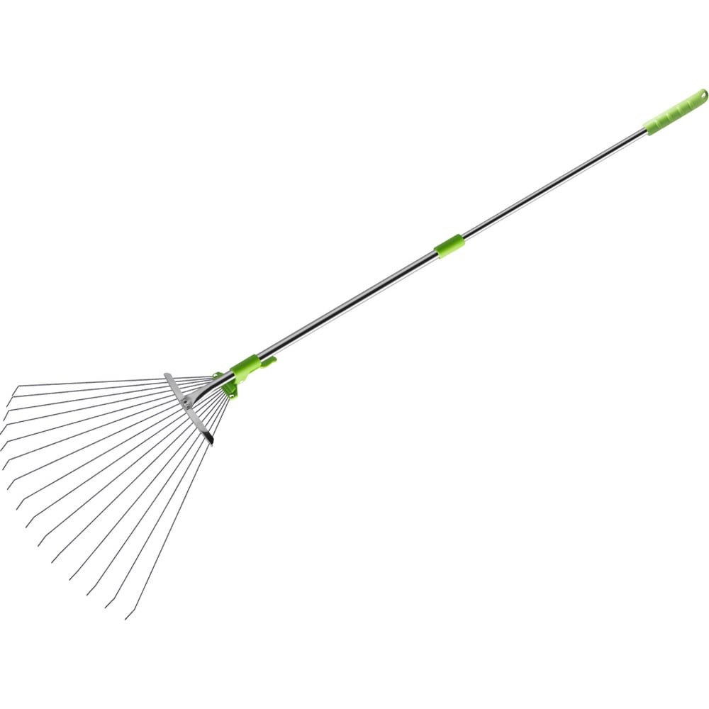 Телескопические веерные грабли Центроинструмент 0231-6 выполнены из пружинной стали. Ручка инструмента изготовлена из алюминиевого сплава. Телескопическая рукоятка грабель складывается, обеспечивая удобство хранения и транспортировки инструмента. Ручка и фиксаторы выполнены из пластика.