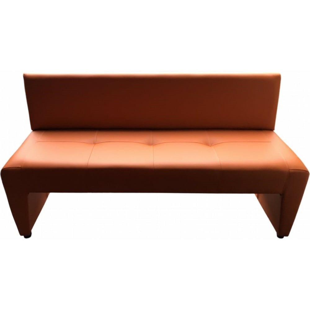 Диван Мягкий офис Ритм трехместный оранжевый РТ301ОР предназначен для офиса или дома. За счет эргономичной формы удобен даже при длительном сидении. Является трехместным, поэтому отличается вместительностью. Благодаря прочному каркасу прослужит долгое время. Дополнительные технические характеристики: Тип: прямой, нераскладной. Механизм: нет. Ящик для белья: нет. Габариты (в/ш/г): 79x152x56 см. Размер посадочного места (г/в): 43x45 см. Ножки: пластик, 5 см.
