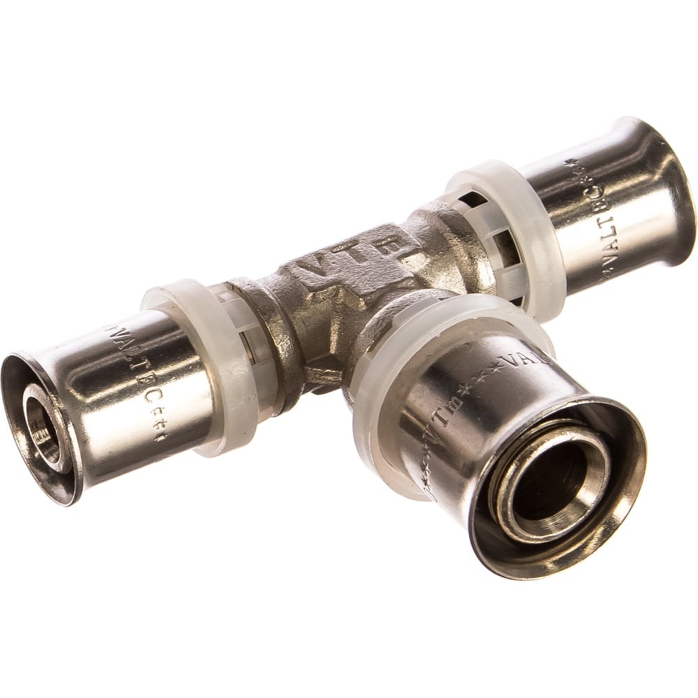 Тройник пресс 16х20х16 Valtec VTm.231.N.162016 легко монтируется на трубах при помощи специального обжимного инструмента. Подходит для работы с металлополимерными и PEX-трубами. Изделие такого типа служит для создания неразъемных соединений при разводке напорного трубопровода систем водоснабжения или отопительного назначения.