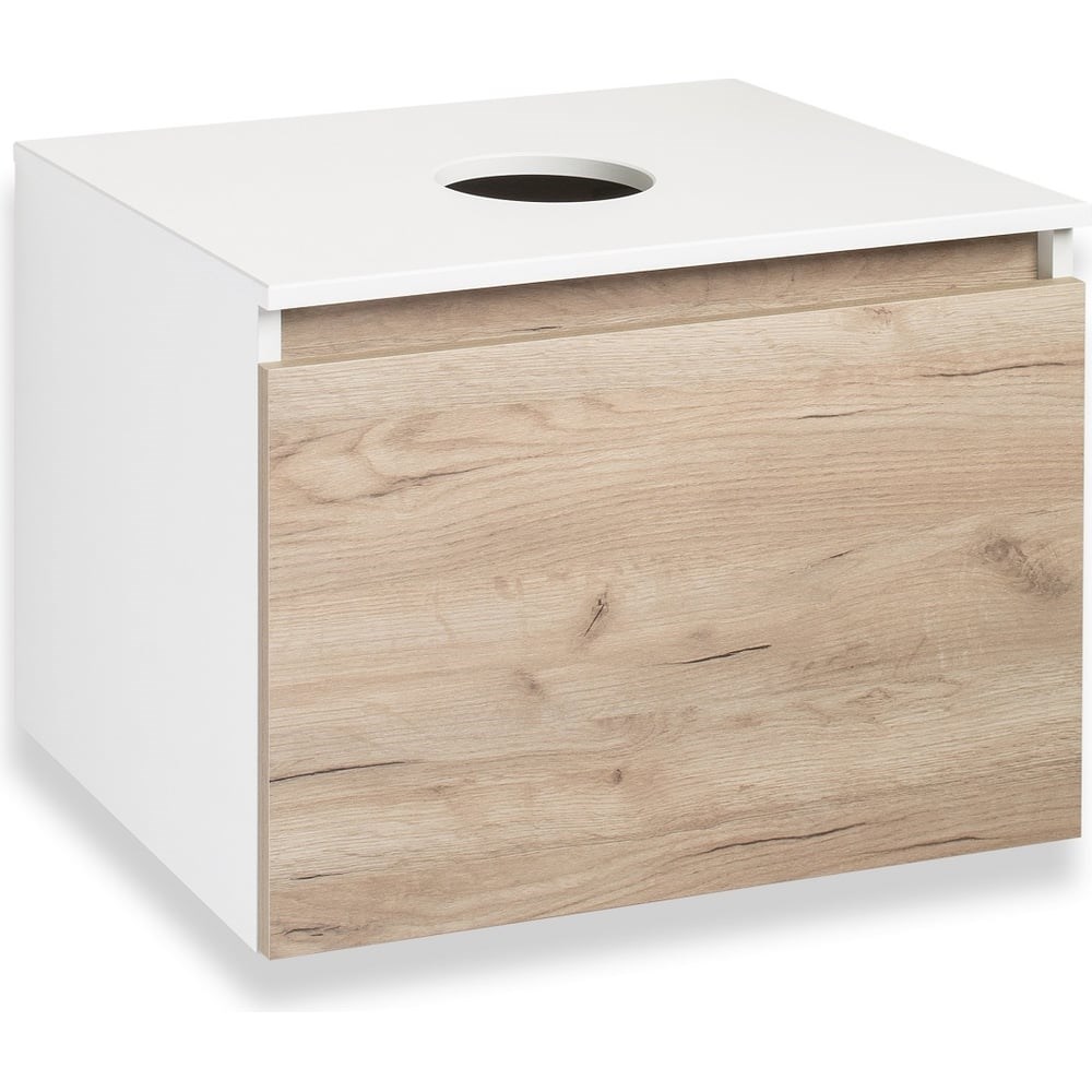 Внимание! Раковина приобретается отдельно. Тумба под раковину в ванную RUNO БАРИ (подвесная) - безупречное сочетание модных тенденций с классическим оформлением ванной комнаты. Тумба под раковину БАРИ оснащена выдвижным ящиком на шариковых направляющих, с системой плавного закрывания. Цвет корпуса классический - белый, при этом цвет фасада в модном цвете – крафтовый дуб, идеально впишутся в любой интерьер ванной комнаты. К тумбе для ванной подойдут умывальники на столешницу: «OVALE 50» (50х36см) - идеальное решение для стильного интерьера ванной, создан для минималистичных интерьеров и подойдёт для санузлов в стиле лофт, минимализм и хай-тек. «PALLA D41» (диаметр 41см) - идеальное решение для стильного интерьера ванной, создан для минималистичных интерьеров и подойдёт для санузлов в стиле лофт, минимализм и хай-тек. «TRE 48» (48х37см) - идеальное решение для стильного интерьера ванной, создан для минималистичных интерьеров и подойдёт для санузлов в стиле лофт, минимализм и Хай-Тек. «TERZO 60» (59х39см) - идеальное решение для стильного интерьера ванной, создан для минималистичных интерьеров и подойдёт для санузлов в стиле лофт, минимализм и хай-тек. Асимметричная раковина, которую можно установить любой стороной, дизайнерское решение для нестандартных интерьеров, усиливает идею лаконичности в дизайне, устанавливается на столешницу, накладным методом.