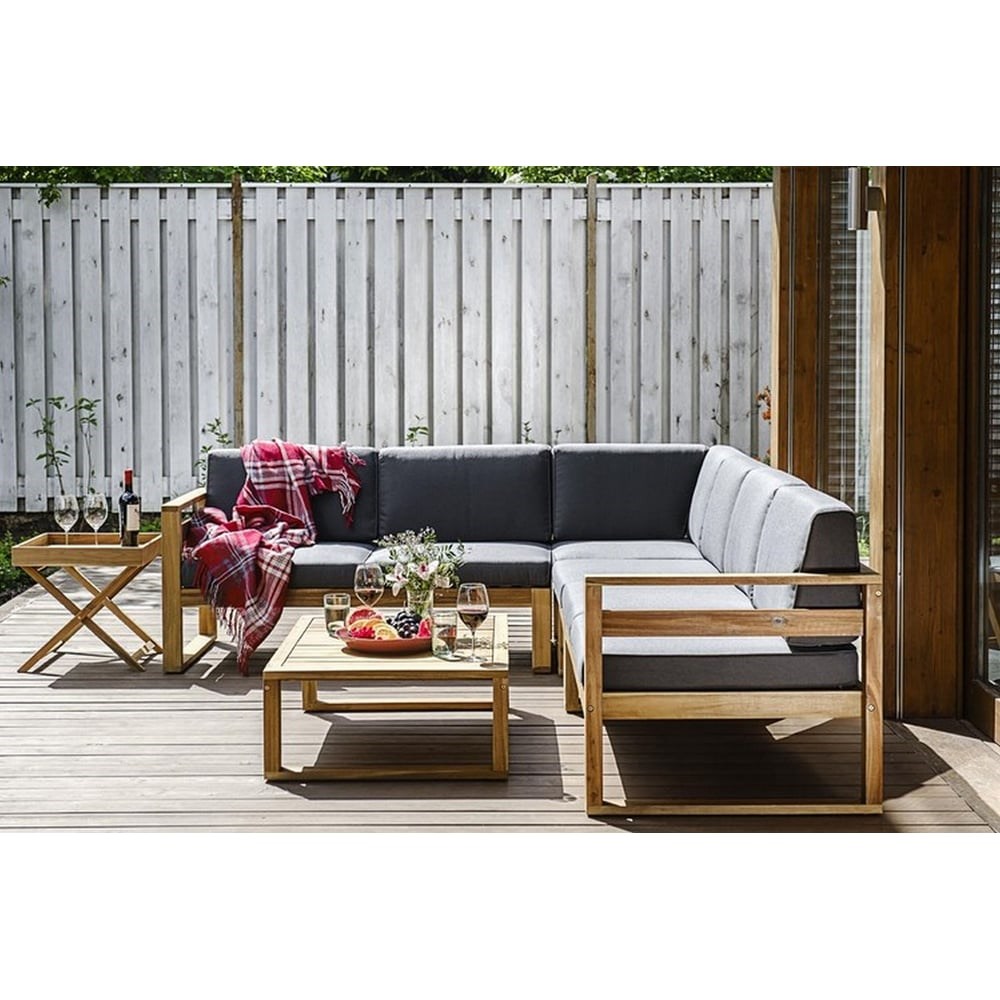 Коллекция BOOKA. Материал — массив акации, отделка экомаслом под натуральный тик. Анодированная фурнитура из нержавеющей стали. Подушки в комплекте, ткань подушек – Olefin, цвет подушек темно-серый графит.