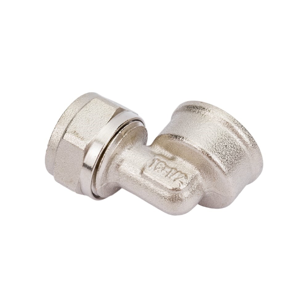 Уголок в/р 16х1/2 CTM - обжимной фитинг для соединения металлопластиковых (металлополимерных) труб. Изготовлен методом горячей штамповки из латуни с последующей термической обработкой и никелированием для предотвращения появления коррозии, механического износа и вредного воздействия агрессивных жидкостей и воздушно-газовых сред. Корпус, накидные гайки и обжимные кольца уголка изготовлены из латуни , уплотнительное кольцо из нетоксичной резины (EPDM), диэлектрическая прокладка из фторопласта Ф4. Накидные гайки – усиленные. Материал: латунь с никелированным покрытием. Соединение: цанга/внутренняя резьба. Рабочая температура: от -20°С до +115°С.