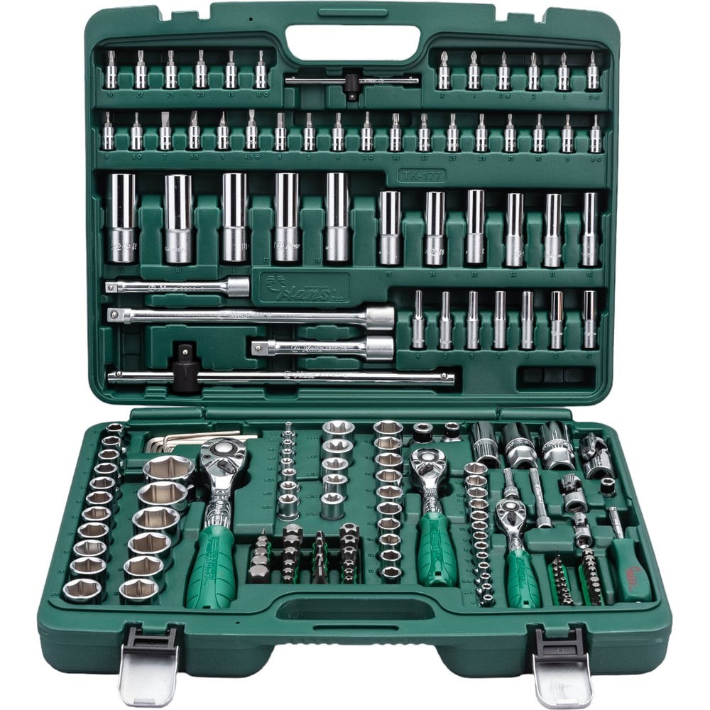 Универсальный набор инструментов Hans 177 предметов TK-177 предназначен для проведения различных работ, например, обслуживания крепежных элементов, монтажа и демонтажа винтов с внутренним профилем или внешней шестигранной головкой. Инструменты выполнены из прочной стали. Рукоятки трещоток изготовлены из пластика. Пластиковый кейс с защелками и ручкой обеспечивает компактное хранение и удобство транспортировки комплекта.