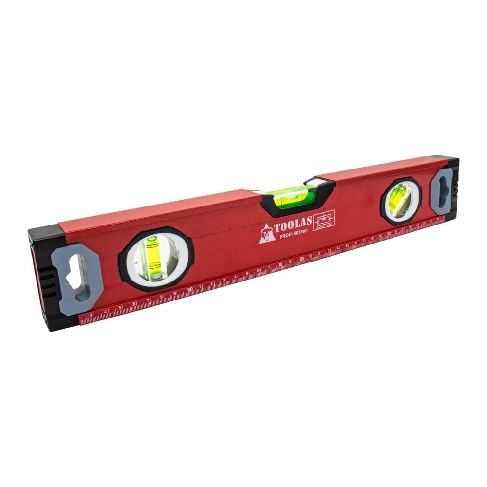 Магнитный уровень TOOLAS профи оснащен магнитом для крепления на металлических поверхностях, чтобы освободить руки при проведении разметки. Ампула с регулируемым углом поможет контролировать наклонные поверхности под углом от 0 до 90 градусов. Основные характеристики строительного, пузырькового уровня: точность пузырька 0.5 мм/м; толщина металла 1.1 мм; встроенный в корпус магнит; прочные ампулы с защитой от помутнения стекла. Линейка с ценой деления шкалы 1 мм поможет при разметке поверхностей. Засечки и подписи белого цвета на строительном уровне TOOLAS pro выполнены методом гравировки. Они не подвержены истиранию от частого контакта с такими поверхностями, как бетон или дерево. Металлический корпус магнитного уровня имеет толщину стенок 1.1 мм. За счет этого, корпус не изгибается и не меняет форму в течение всего срока использования даже после падения на твердую поверхность.