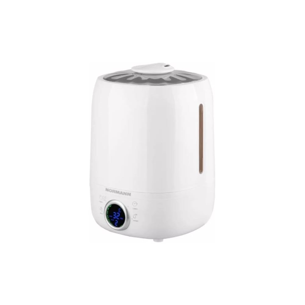 Увлажнитель воздуха NORMANN AUH-032 необходим для создания оптимальной влажности в помещении. Ультразвуковая технология работает бесшумно. Большой объем резервуара для воды (4,6 литра). Прибор имеет регулировку интенсивности увлажнения и регулировку направления потока струи. Если вода в увлажнителе закончилась, то прибор сообщит об этом звуковым сигналом. Сенсорное управление на корпусе. Встроенный гигростат (индикация уровня влажности) и термометр (индикация температуры воздуха). Увлажнитель способен поддерживать заданный уровень влажности. Прибор имеет LCD-дисплей с индикацией всех режимов и функций. В ночном режиме индикация отключается. Уровень шума не более 35 дБ. Класс защиты: II. Рабочая температура: +5°С - +40°С.