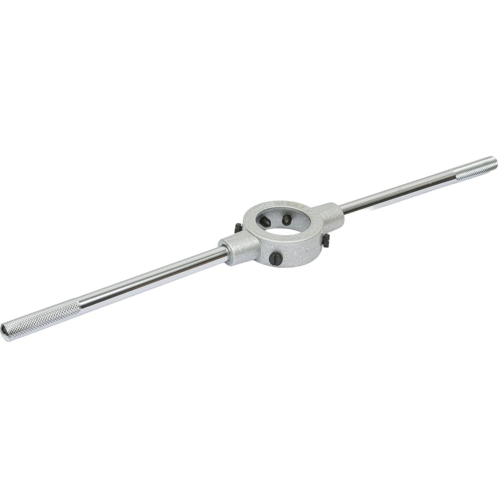Вороток используется для установки плашек при нарезании резьбы ручным способом. Плашкодержатель оснащен 5 винтами для надежного крепления плашки в приспособление. Корпус инструмента выполнен из качественного цинкового литья, благодаря чему отличается надежностью, долговечностью и стойкостью к коррозии. Инструмент выполнен в соответствии со стандартом DIN 225.