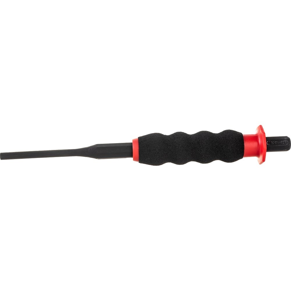Выколотка с протектором (5х200 мм) KING TONY 76405-08G позволяет демонтировать штифты и шплинты. Закаленный материал (сплав хрома и ванадия с добавлением молибдена) не скалывается при ударе. Для снижения отдачи предусматривается покрытие пластиковой рукояти материалом на основе резины. Диаметр рабочей части составляет 5 мм.