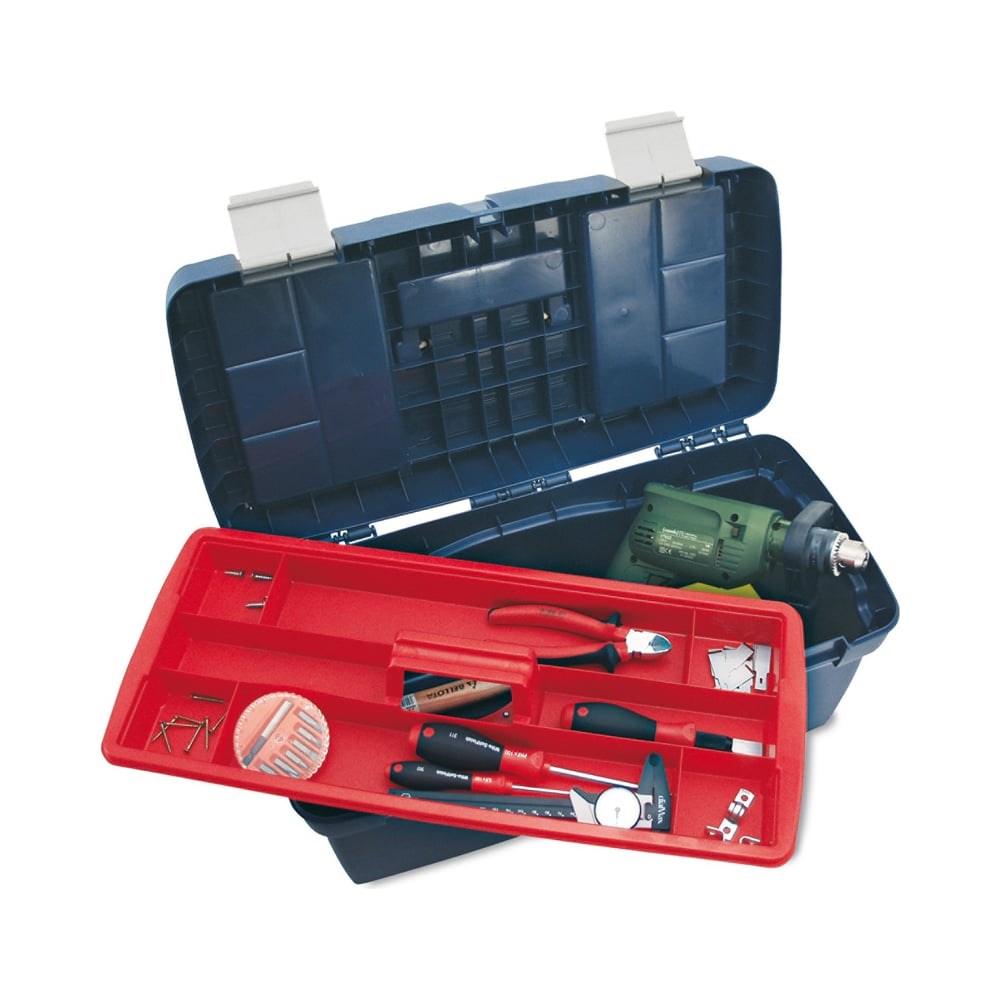 Ящик для инструмента фирмыTayg синего цвета. В комплекте имеются лоток и 2 органайзера. Ящик снащен металлическими замками и имеет размер: 580x290x290 мм. Может быть полезен как для домашнего, так и для профессионального использования.Ящик для инструмента Tayg - это профессиональный ящик для хранения и транспортировки инструментов, который используется в различных отраслях промышленности, строительства, ремонта и других областях. Он выполнен из прочного пластика, имеет удобную ручку для переноски и металлические замки для защиты содержимого от повреждений. В ящике есть два органайзера и лоток для хранения различных инструментов: сверл, ключей, отверток, молотков и т.д. Ящики Tayg отличаются высоким качеством изготовления и надежностью, что делает их идеальным выбором для профессиональных мастеров и любителей. Данная модель изготовлена из ABS-пластика, который отличается высокой стойкостью к ударам и низким температурам. Это обеспечивает долгий срок службы и надежное хранение инструмента.