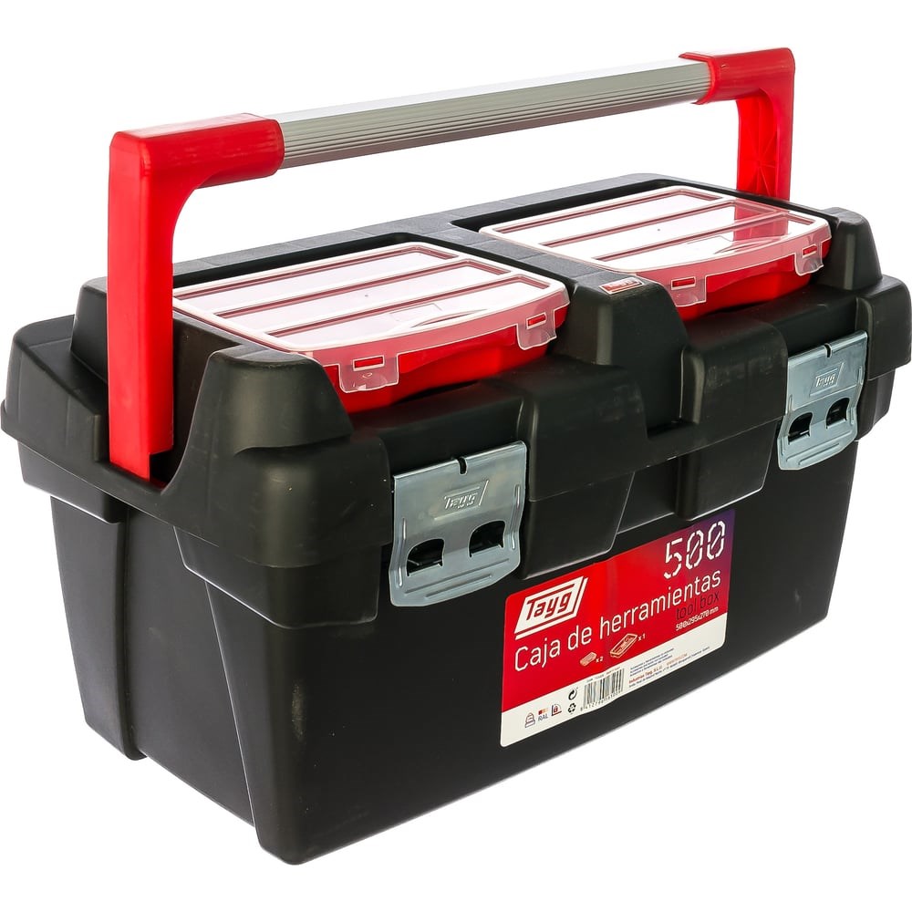 Ящик для инструментов фирмы Tayg. В комплекте имеются лоток и 2 съемных органайзера. Размер данной модели составляет: 500x295x270мм.Ящик для инструмента Tayg - это профессиональный ящик для хранения и транспортировки инструментов, который используется в различных отраслях промышленности, строительства, ремонта и других областях. Он выполнен из прочного пластика, имеет удобную ручку для переноски и металлические замки для защиты содержимого от повреждений. В ящике есть просторное отделение, лоток и два органайзера для хранения различных инструментов: сверл, ключей, отверток, молотков и т.д. Ящики Tayg отличаются высоким качеством изготовления и надежностью, что делает их идеальным выбором для профессиональных мастеров и любителей.Наличие лотка для мелочей создает дополнительное пространство для крепежа.