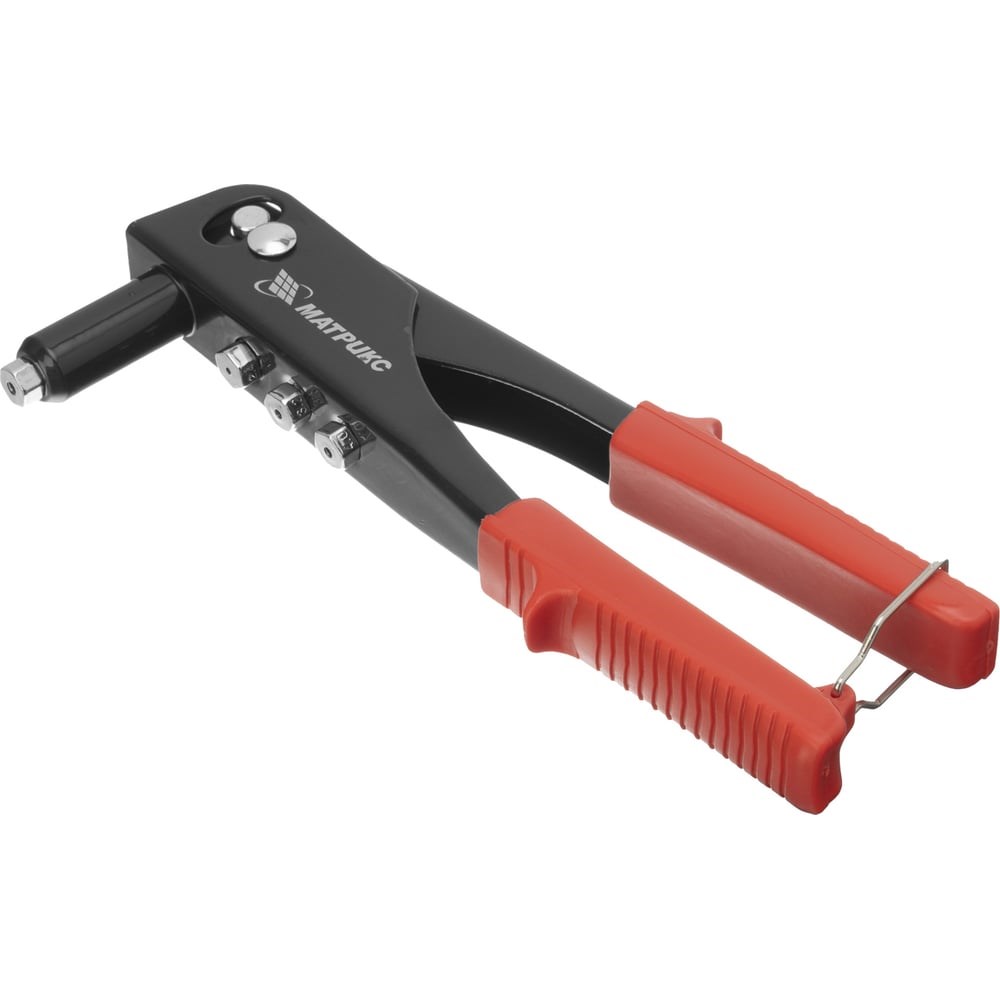 Заклепочник МАТРИКС 40515 длиной 225 мм используется с вытяжными заклепками диаметром от 2,4 до 4,8 мм. Инструмент применяется при работе с многослойным материалом и различными деталями из металла, пластика и т. д. В комплект входят сменные насадки для заклепок различного диаметра, фиксирующиеся на корпусе инструмента, поэтому их можно быстро менять при необходимости. Заклепочник будет полезен во время проведения строительных и ремонтных работ, пригодится также дома, в гараже или на даче.дополнительные характеристикиДиаметр используемых заклёпок: 2.4, 3.2, 4.0, 4.8 мм.