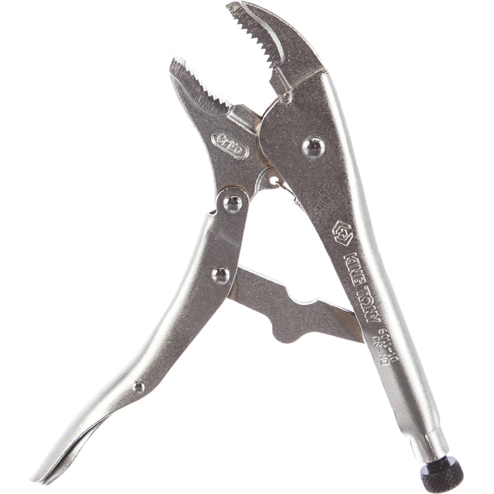 Зажим с фиксатором KING TONY 250 мм 6011-10R применяется для удержания заготовки, ее фиксации во время работы. Инструмент оснащен хромованадиевыми губками и ручками для удержания зажима. Регулировочный винт предназначен для фиксации губок в нужном положении. Длина - 250 мм.