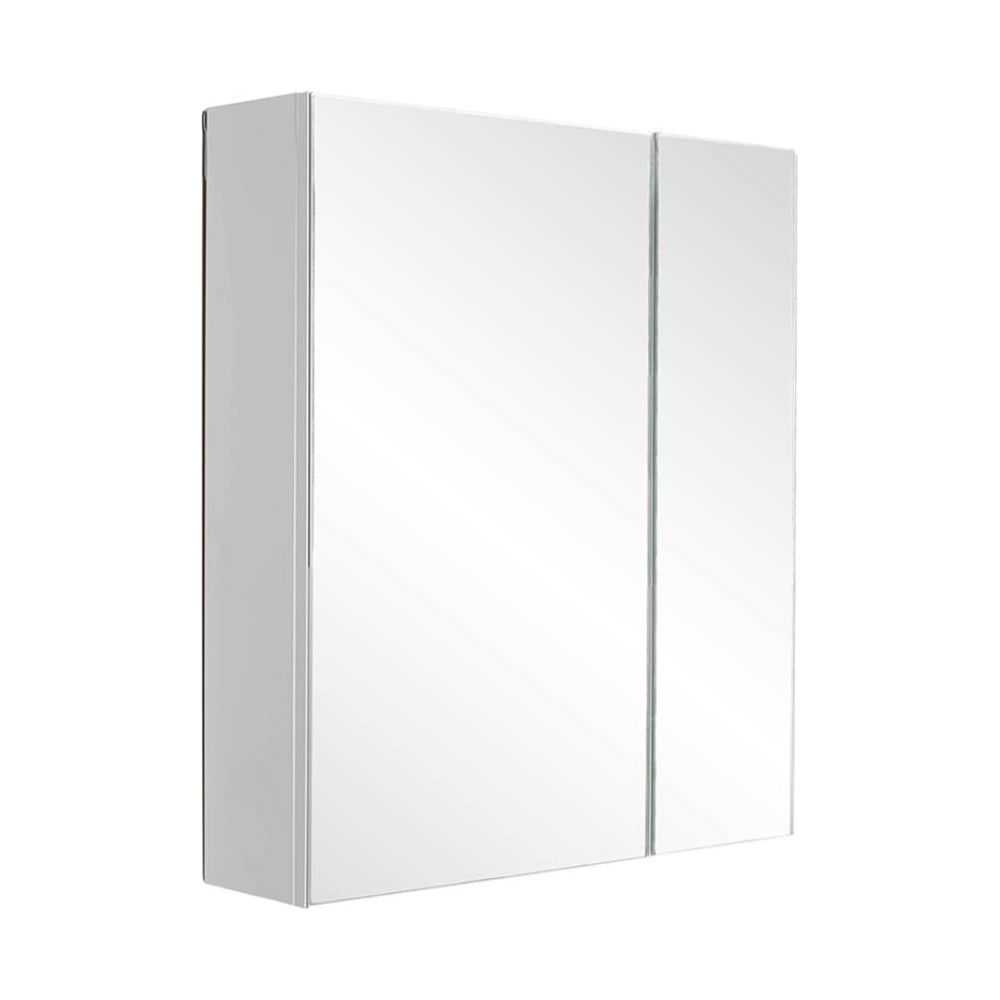 Зеркальный шкаф (две створки) левосторонний, большая дверка слева, маленькая справа. Фасад зеркальное полотно, корпус ЛДСП - белый глянец. Дверцы с механизмом доводчика, обеспечивающим плавное закрывание. В комплекте две полки ДСП.Поставляется в собранном виде.