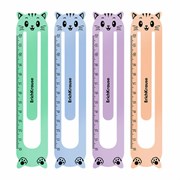 Закладки для книг пластиковые ERICH KRAUSE "Кошки", набор 4 шт., шкала 12 см, ассорти, 0,6 мм, 61228