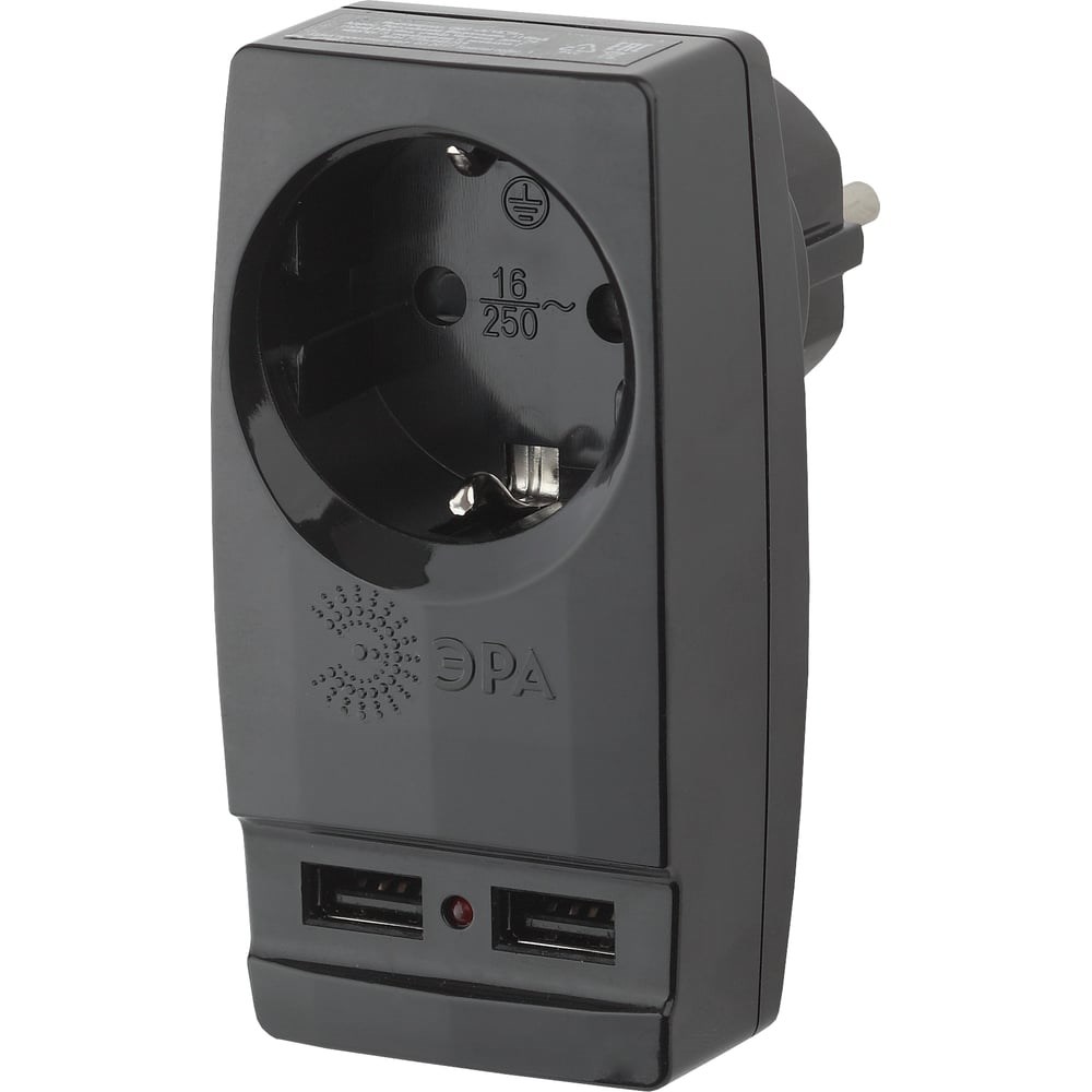 Адаптер ЭРА SP-1e-USB-B Polynom 1гн 220V + 2xUSB 2100mA, c заземлением, черный Б0026333 станет Вашим надежным помощником, если в Вашем доме недостаточно розеток, чтобы одновременно подключить несколько электроприборов. Электрический разветвитель рассчитан на максимальную мощность 16А/3500Вт. Корпус выполнен из ударопрочного и негорючего пластика (поликарбонат). Модель тройника на 16А позволяет подключить мощные бытовые приборы общей нагрузкой до 3500Вт. Тройник также оснащен 2 USB для зарядки мобильный устройств. Дизайн разработан в России командой Эра Style.