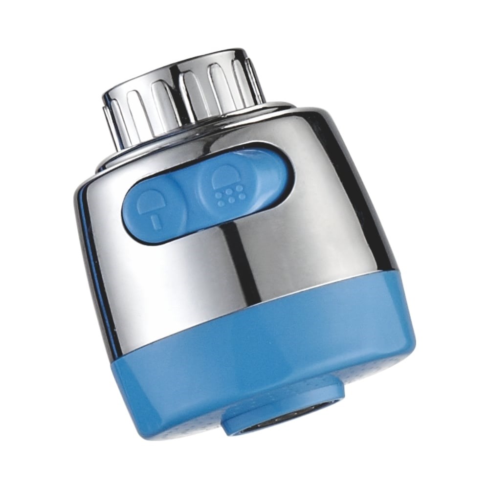 Аэратор GRIALE (насадка на кран) цветной (голубой) DK77/голубой обладает двумя режимами подачи воды: струей и душем. Режимы переключается кнопкой. Насадка на кран универсальна и совместима со смесителями с наружной резьбой под аэратор. Изготовлена из высококачественного пластика и может быть использована с наружным вариантом резьбы смесителя под аэратор. Внутренний размер 20 мм. Внешний размер 27 мм.