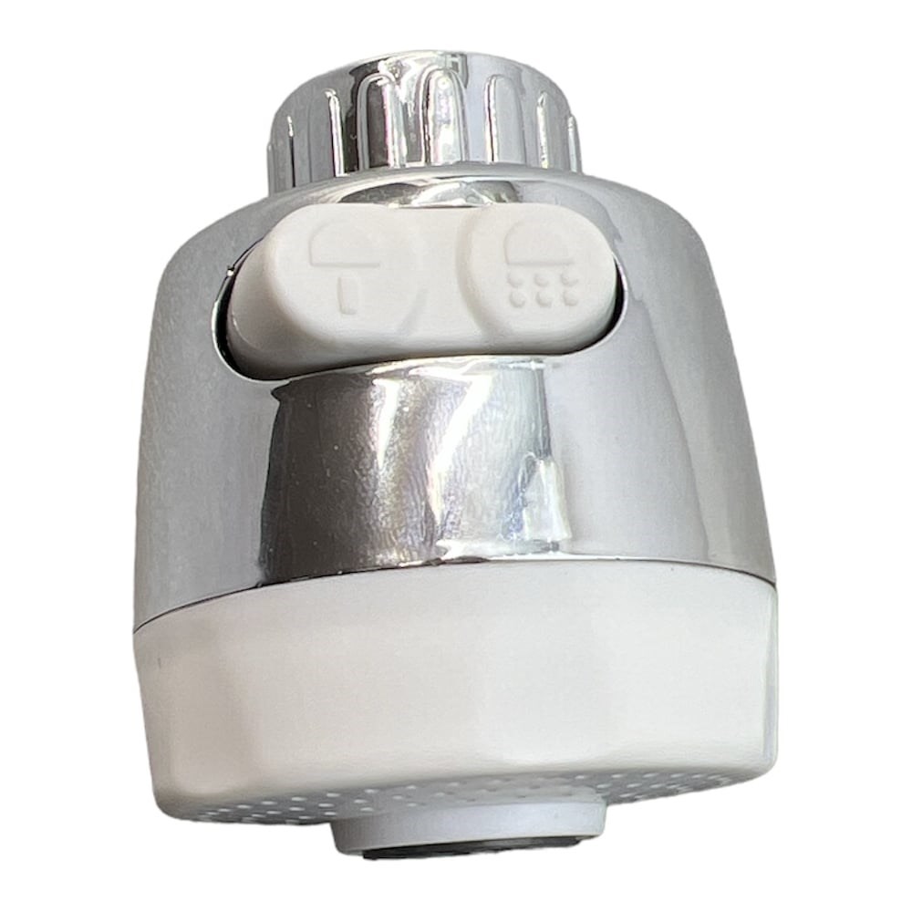 Аэратор (насадка на кран) GRIALE цветной DK77/белый обладает двумя режимами подачи воды: струей и душем. Режимы переключается кнопкой. Насадка на кран универсальна и совместима со смесителями с наружной резьбой под аэратор. Призвана улучшить и добавить функциональности крану на кухне. Изготовлена из высококачественного пластика и может быть использована с наружным вариантом резьбы смесителя под аэратор.