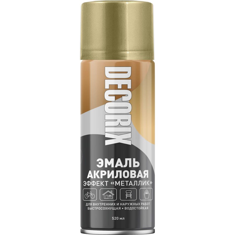 Аэрозольная эмаль Decorix (металлик; глянцевая; акриловая; латунь зеленое золото; 520 мл) 0103-13 DX используется в декоративно-оформительских работах, строительстве и ремонте. Предназначена для окрашивания: древесины, пластика, металла, бетона, кирпича, керамики, стекла, картона, минеральных поверхностей. Аэрозольная эмаль удобна для окрашивания небольших поверхностей и труднодоступных мест. Образует гладкое, устойчивое к выцветанию покрытие.