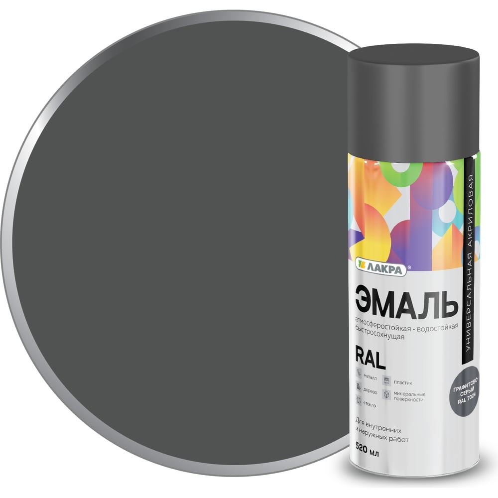 Аэрозольная эмаль ЛАКРА графитово-серая RAL 7024 Лк-00012495 - высококачественная универсальная быстросохнущая акриловая эмаль используется в декоративных работах, строительстве и ремонте. Продукт предназначен для окрашивания и защиты металлических, деревянных, пластиковых, стеклянных и минеральных поверхностей (керамика, камень, бетон, кирпич). Благодаря составу, может применяется для наружных и внутренних работ. Расход одного баллона до 3 кв. м в зависимости от материала подложки, цвета и количества слоев.