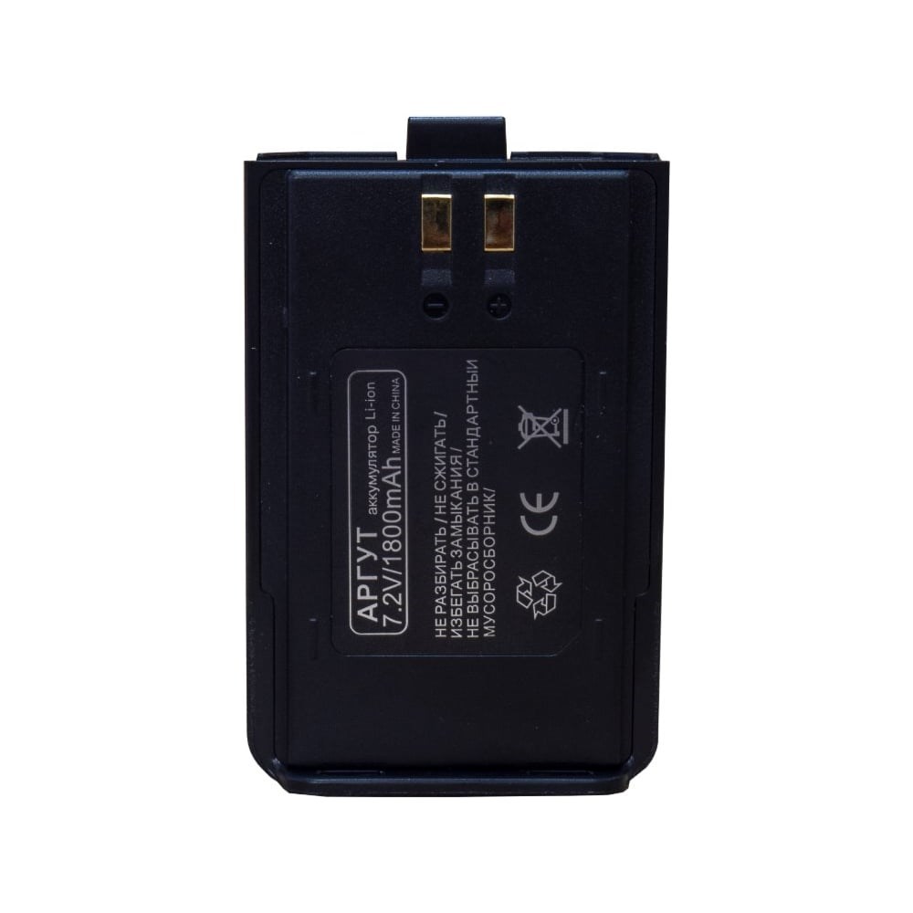Аккумуляторная батарея Аргут Li-ION 1800 mAh подходит для радиостанции А-43. Имеет внушительную емкость, благодаря чему рация может долгое время работать без подзарядки. АКБ отличается отсутствием эффекта памяти и саморазряда за счет литий-ионной технологии.