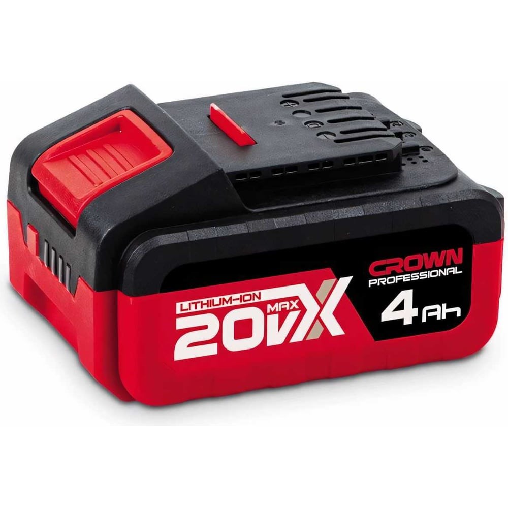 Аккумулятор CROWN CAB204014XE CB является универсальным и предназначен для использования с любой моделью аккумуляторного инструмента CROWN линейки 20VMax. Каждый аккумуляторный блок имеет интеллектуальную систему контроля аккумуляторных ячеек во время зарядки и во время работы, для сохранения максимально долгого срока службы; Длительный срок службы достигается точным управлением процесса зарядки/разрядки с помощью процессора электронного модуля аккумуляторного блока; Большой срок хранения без потери заряда обеспечен очень низким током саморазряда у всех аккумуляторных батарей CROWN; Система воздушных каналов, внутри аккумуляторных блоков CROWN, обеспечивает эффективный отвод тепла во время зарядки, увеличивая тем самым срок службы аккумуляторных элементов; Система автоматической самодиагностики аккумуляторного блока CROWN вовремя сообщит о низком уровне заряда или о возникших неисправностях; Все аккумуляторные блоки CROWN 20VMax имеют встроенный индикатор ёмкости для удобного контроля уровня заряда (четыре индикатора).