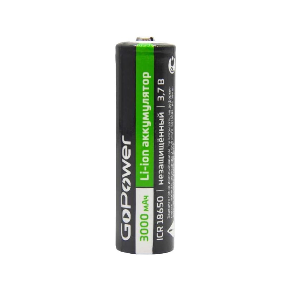 Аккумулятор Li-ion GoPower ICR18650 3.7V 3000mAh без защиты. Требуется зарядка перед использованием. Количество циклов перезарядки 1000. Данные батарейки широко применяются в налобных, тактических, велосипедных и подводных фонарях. Не рекомендуется хранить аккумулятор в устройствах, когда оно не используется.