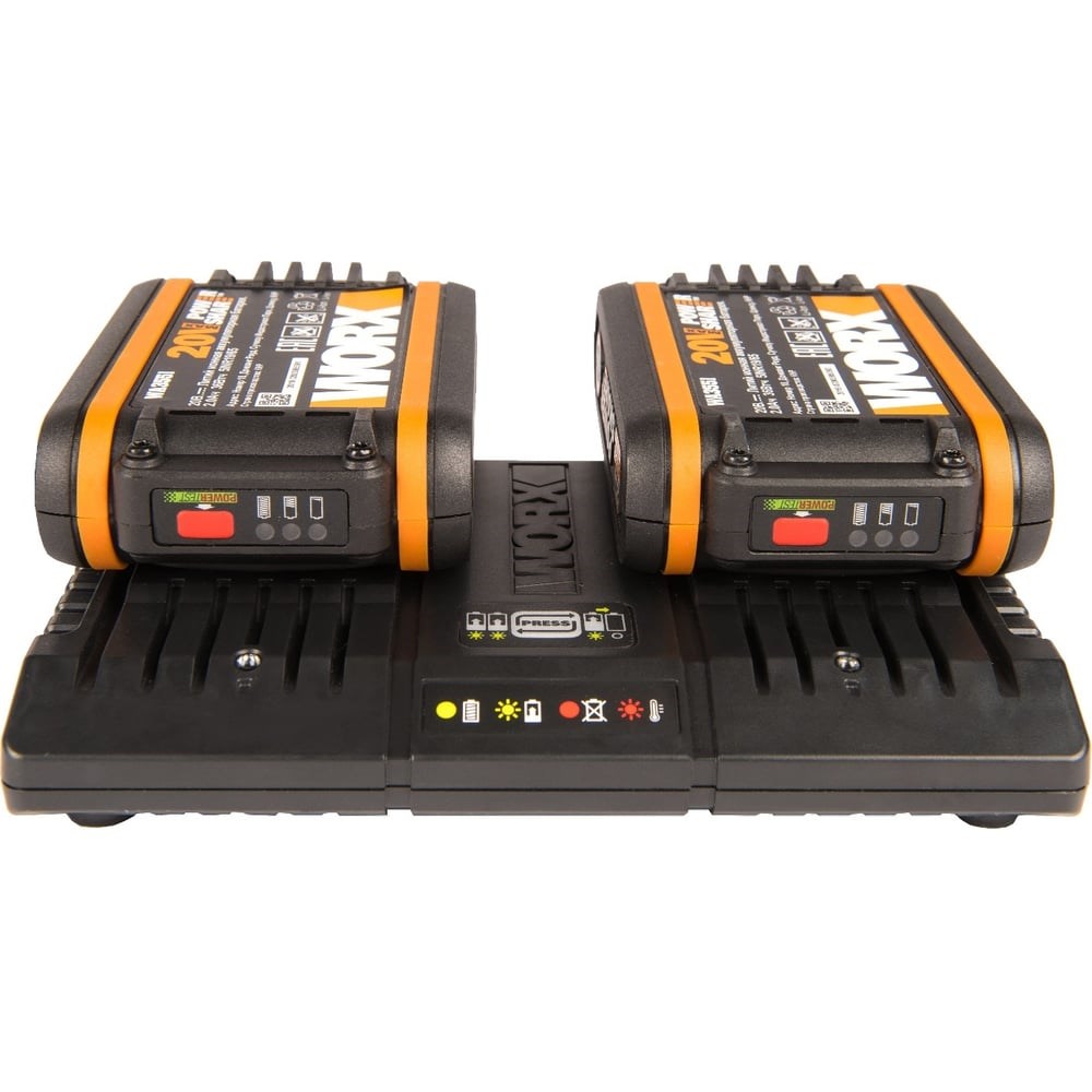WA3610 – это универсальный комплект для всех аккумуляторных инструментов WORX в линейке вольтажа 20В. Комплект состоит из двух литий-ионных батарей Powershare 2Ач и двойного зарядного устройства WA3869. Надежные источники питания Аккумуляторы линейки WORX Powershare оснащены электронной платой защиты от глубокого разряда и перегрева, что обеспечивает неприхотливость и длительный срок службы батарей. WORX Powershare собираются из компонентов ведущих производителей отрасли: Sony и Samsung. Быстрая зарядка Практичный дизайн зарядного устройства WA3869 позволяет одновременно восстанавливать емкость сразу двух батарей. Зарядная станция также оснащена защитным чипом от перезаряда и перегрева АКБ. Для контроля за состоянием батарей на корпусе устройства предусмотрен специальный индикатор. Для восстановления батареи 2Ач потребуется всего 1 час