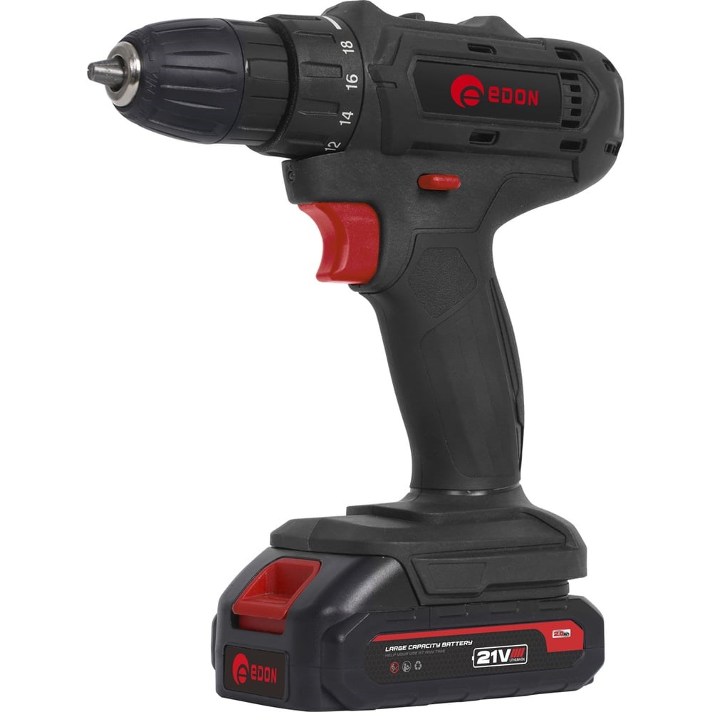 Аккумуляторная дрель Edon AD-21C 202020100005 подходит для сверления отверстий в твердых и мягких материалах, а так же закручивания/откручивания крепежа. Имеет большой крутящий момент.Сниженное потребление энергии позволяет работать долго.Благодаря двухскоростному редуктору можно выбрать оптимальную скорость в зависимости от задачи.Быстрозажимной патрон обеспечивает простую замену оснастки.
