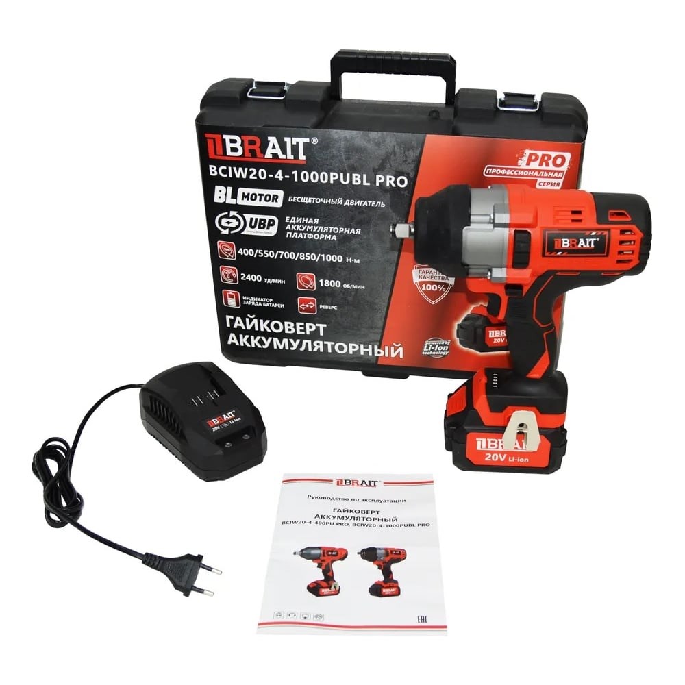 Аккумуляторный гайковерт BRAIT BCIW20-4-1000PUBL PRO