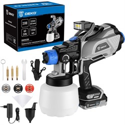 Краскопульт аккумуляторный DEKODKSG20 используется для обработки поверхности водно-меловыми и водно-известковыми составами при строительно-отделочных работах, при опрыскивании и побелке садов, дезинфекции помещений. Характеристики устройства: Напряжение: 20 В Емкость батареи: 3000 мАч Расход воздуха: 160 л/мин Расход краски: 590 мл/мин Объем бака: 1200 мл Скорость: 32000 об/мин Диаметр сопла: 1мм, 1,8мм, 2.5 мм Максимальная вязкость: 60 DIN Способ распыления: HVLP Наличие подсветки: да Инструмент совместим с аккумуляторами: DEKO UNV Makita 18В Li-Ion тип BL-1830, BL-1840, BL-1850, BL-1860 С аккумуляторами от щеточного инструмента DEKO, произведённый не ранее 2024 года"