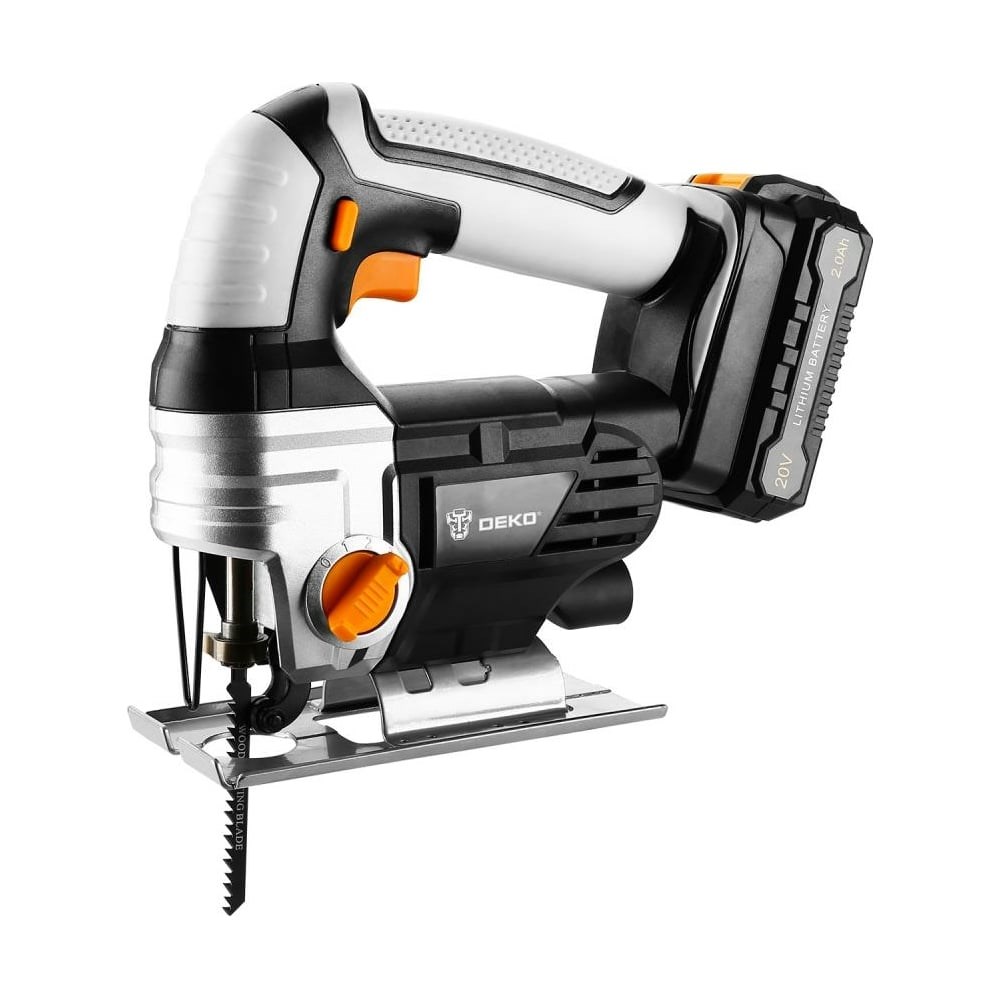 Аккумуляторный лобзик DEKO DKJS20 063-4207 используется для распиливания дерева, металла, пластика, резины при отделочных или ремонтных работах. Предусмотрен бесключевой патрон для простой смены оснастки. К патрубку можно подключить пылесборник или строительный пылесос для поддержания чистоты рабочего места. Инструмент имеет регулировку частоты вращения для точной настройки под разные материалы. Характеристики: Напряжение: 20 В Емкость аккумулятора: 2 Ач Скорость холостого хода: 0-2400 об/мин Ход пилки: 19 мм Макс. глубина реза дерева: 56 мм Макс. глубина реза металла: 6 мм
